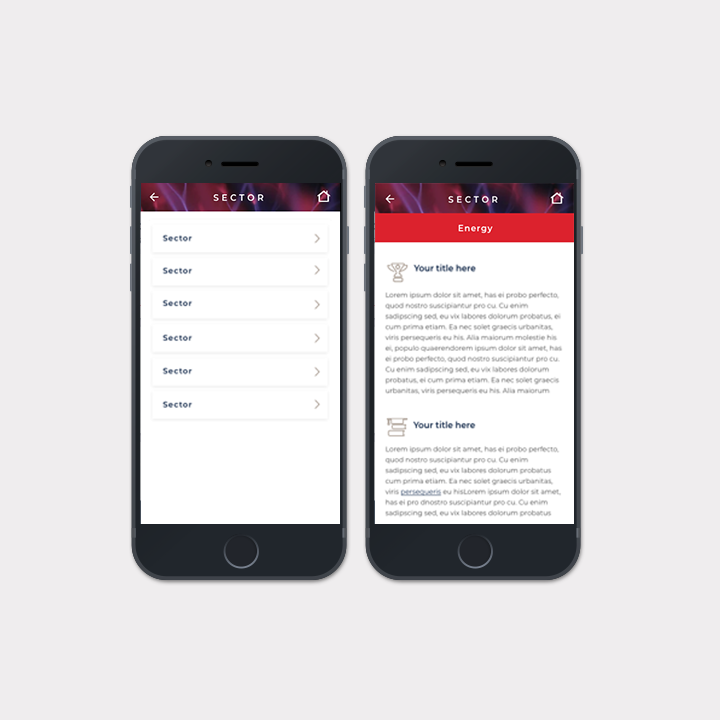 The app user interface was designed using clean and simple User Interface (UI) principles, placing the user in control and ensuring comfortable user experience with the product. The UI design applied existing corporate identify and brand materials.